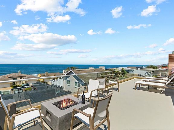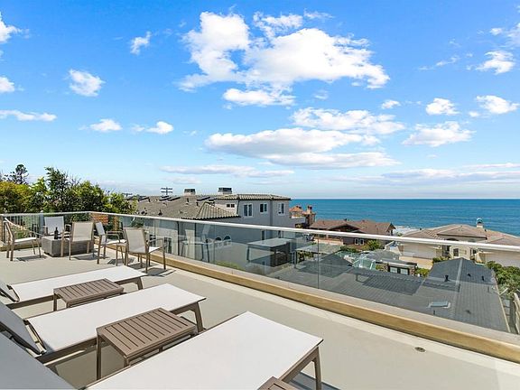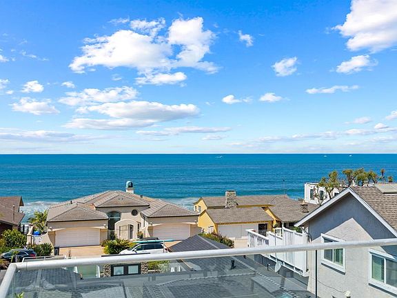 Welcome to your dream oasis! Witness breathtaking panoramic ocean and white water views from multiple vantage points throughout the home, including a spacious rooftop deck perfect for sunset gatherings. This immaculate 4-bedroom plus loft, 5.5-bathroom contemporary masterpiece boasts 3,875 square feet of refined living space. Located in a tranquil beach neighborhood, this home offers the perfect balance of serene coastal living and convenient proximity to Carlsbad Village, just a short stroll away. With beach access just 450 feet away (2 minute walk), it’s effortless to spend your days lounging by the ocean, surfing the waves, or enjoying a refreshing swim. After a day at the beach, rinse off in your outdoor shower and store your beach gear with plenty of space. With protected ocean views ensured by a deed restriction on the neighboring property, you can rest easy knowing your stunning scenery is safeguarded. As you step inside, you’ll immediately appreciate the pride of ownership reflected in every detail. The expansive layout is designed for both relaxation and entertaining, highlighted by a massive primary suite featuring a cozy fireplace, a private patio, and a walk-in closet. The gourmet kitchen is a chef's delight, equipped with top-of-the-line Viking and Kitchen-Aid appliances and a generous walk-in pantry. Additional features include central air conditioning, new carpet, new paint, plumbed for central vacuum system, separate laundry room with sink, and alarm system. For those seeking an easier transition, there is an option to purchase the home furnished, featuring exquisite pieces from Restoration Hardware. This is truly a rare opportunity to secure a property in this highly sought-after coastal neighborhood. Don’t miss your chance to own this extraordinary home where luxury meets the beach lifestyle. Schedule a showing today!