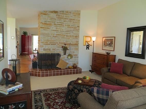 Sharp, open concept California ranch situated on a cul de sac! Hardwood floors throughout much of main living space, gorgeous 3-sided stone natural fireplace can be enjoyed from all entertaining rooms. Updated kitchen boasts all appliances, loads of cabinetry and snack bar overlooking family room. Generous living and family rooms offer vaulted ceilings. All this on a beautiful, mature lot in a quiet neighborhood. This is a must see! One year UHP home warranty included.