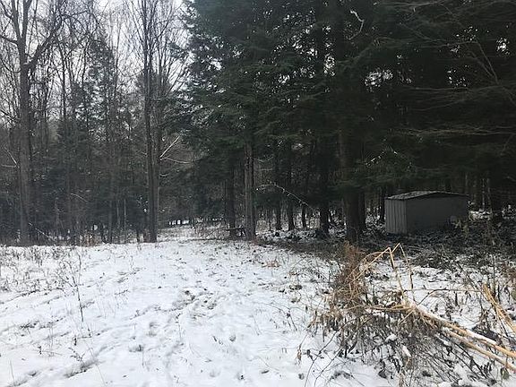 5.64 acres in quiet location with two travel trailers, storage shed and easy road access. Great location for your future camp or home!