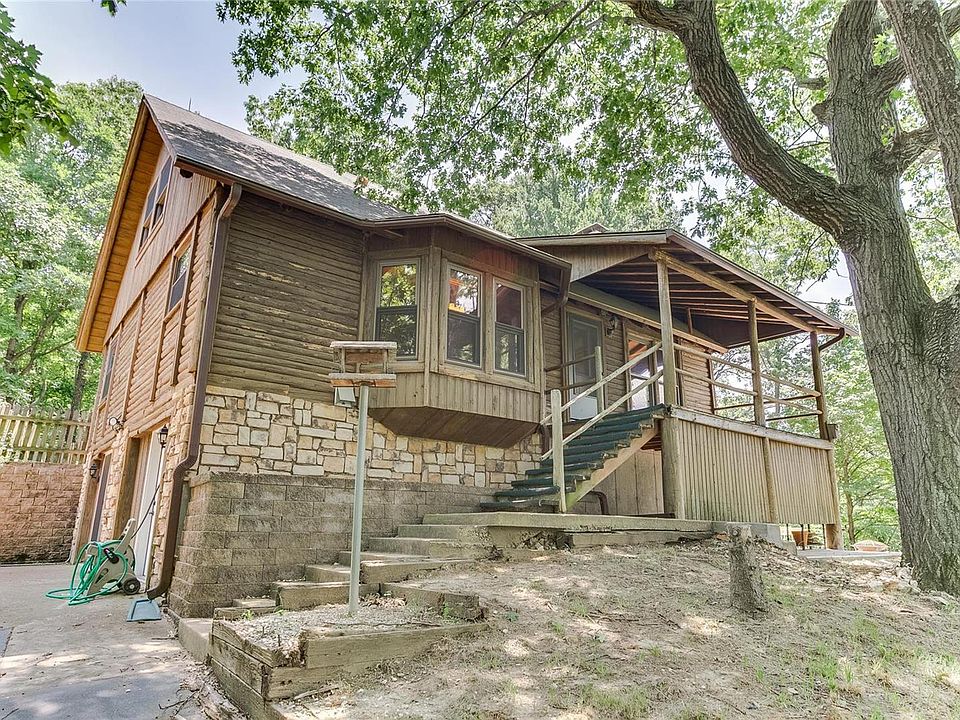 Unbelievable opportunity to own over 21 acres located in Seckman Schools! Gorgeous sunsets can be seen from this peaceful setting! Log home with 3 bedrooms/3 full baths with much of it having bamboo flooring (there is a lot of flooring left to finish the project). The interior has a huge vault with log beams running through, loft bedroom with full bath, main floor master, breakfast room with bay, finished lower level, which actually has two walk-outs. One is to the driveway/garage and the other to a huge patio! There is a small fenced area in rear of home. Down the hill is a scenic, stocked pond. This property is like no other in the area, with minimal tree trimming you can see for miles! Both refrigerators and washer & dryer stay. This home is being sold as-is, with no repairs or inspections being completed by seller. Don't miss out on this unique property!