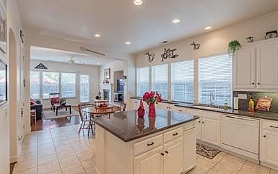 Dont miss this beautiful single story home in the desirable gated community of Eagle Ridge golf course. 3 bedroom and 2.1/2 bathroom plus a large office and sitting room that can easily be a 4th bedroom . Home features a front Courtyard Entrance. The formal entry leads into the living room with lots of windows filling the room with natural light. The Spacious Gourmet kitchen has granite counters, a large island, pantry, abundant cabinets and counter tops. The family room with its open floorplan hign ceilings lots of windows cozy fireplace and easy access thru the sliding door to the beautiful paved patio makes this perfect for family living and entertaining. The master bedroom is spacious with plush carpeting a number of windows look out to the lovely landscaped back yard . The attached master bathroom has tile floor ,soaker tub ,walk in closet separate glass enclosed shower. Window blinds throughout.