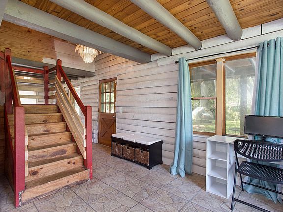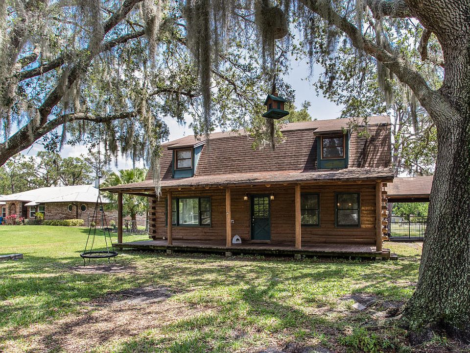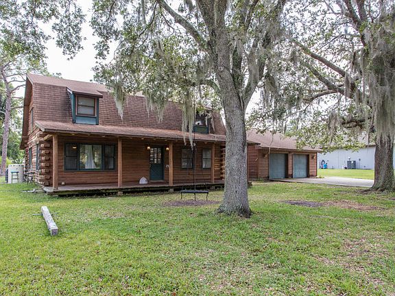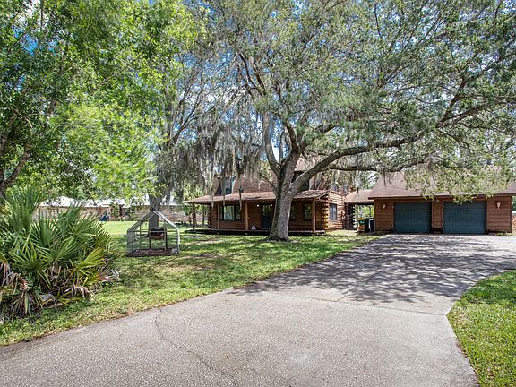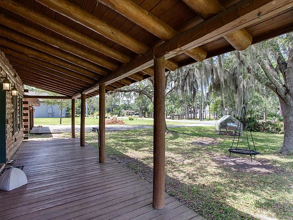 RARE OPPORTUNITY...BRING MOUNTAIN LIVING HOME TO THE FLORIDA WEATHER....Log cabin in the coveted National Police Foundation. Garage has 11x15 workshop that could easily convert into a guest room. Lots of storage space in this home. A/C replaced in 2017, appliances 2018, aerator and water softener 2017, well pump 2018, carpet 2018, brown shed in the back conveys with property.