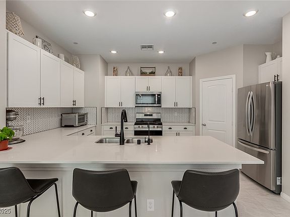 - Description: Breakfast Bar/Counter,Breakfast Nook/Eating Area,Lighting Recessed,Quartz Countertops,Stainless Steel Appliances,Tile Flooring,Walk-in Pantry