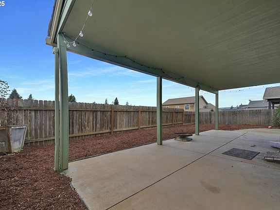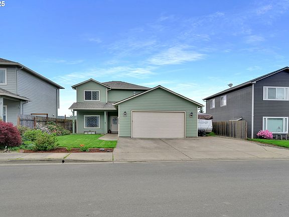 Welcome Home! Tucked away on a quiet dead-end road, this move-in ready home offers the perfect blend of space, functionality, and convenience. Step inside to find large, airy rooms with soaring ceilings that create an inviting and open feel. The smart floor plan features an upstairs laundry area conveniently located near the bedrooms, making day-to-day living a breeze. A unique bonus room with its own separate entrance is currently set up as a salon—perfect for a home business, creative studio, or guest space. The extra-large garage includes an 11x12 workshop area, ideal for hobbies, projects, or extra storage. Relax under the covered patio while enjoying peaceful views of the nearby hills. The backyard backs up to a quiet parking lot for added privacy and the front yard boasts mature landscaping with low-maintenance appeal and underground sprinklers. Located just off Exit 172, it’s an easy commute north to Eugene and Springfield, with very little noise from I-5. Don’t miss your chance to make this versatile and charming property your new home!
