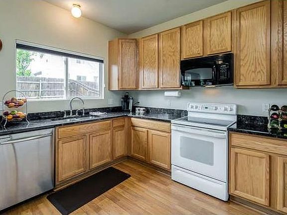 Sunny home on corner lot in Sterling Hills neighborhood convenient to nearby schools, shopping and parks. Arrive home to covered front porch overlooking a luscious green lawn. Front entry leads into a beautiful airy living room with vaulted ceilings and an open staircase. Handsome laminate wood floors throughout the main level leading into an open kitchen with granite countertops and an eat in area connecting to family room thats perfect for socializing during meal prep. Family room features, ceiling fan, gas fireplace and a built-in cabinet great for displaying family photos. Master suite has walk-in closet, and five piece master bath. Amazing second floor loft with wall-to-wall built in shelving, great for office space or kids area. Large backyard with privacy fence and plenty of room to garden and let kids play. Beautiful throughout.