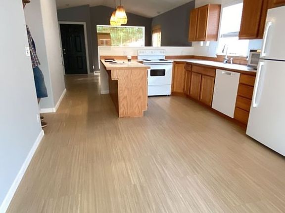 Enjoy efficient heating with natural gas forced air. The home is equipped with essential appliancesgas water heater, refrigerator, disposal, and dishwasherand includes a laundry area with washer hookups. Vinyl, carpet, and LVP flooring add durability and style throughout.
