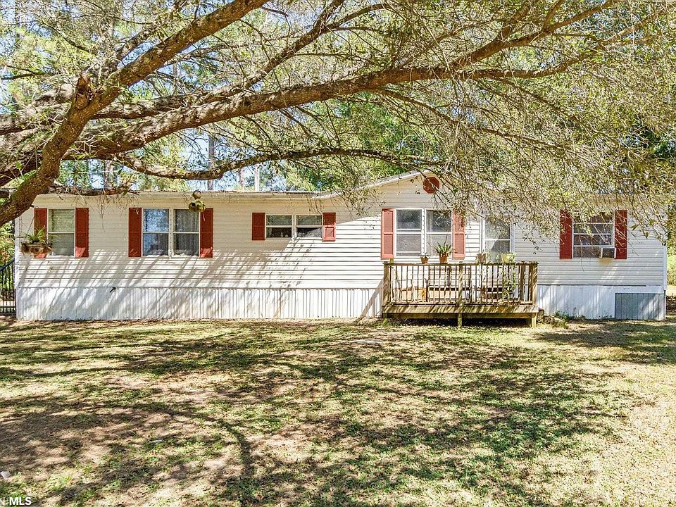 Reduced Price and Ready to Sell!! Looking for something in Baldwin County with no HOA's and room to add your own taste? This is it! This home sits on just over 1 acre with deeded driveway entrance, tucked away off the road and with a beautiful tree lined yard. Relax on the front deck with a cup of coffee and the back deck with a glass of tea. Your home features a split bedroom plan, large kitchen with center island and office nook, living room with wood burning fireplace and massive primary suite. Primary suite bathroom gives you a huge soaking tub, separate shower, double vanity and double walk-in closets. Storage shed outback for extra protection of your lawn equipment and toys. Must see to appreciate the potential of this home. Call for your private tour today!