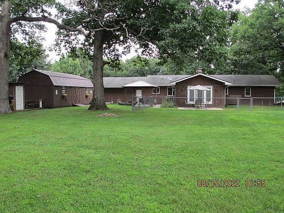 This home is located on the west side of Route 1 approximately 1.5 miles north of Walmart and is in the Bismarck School district. It is surrounded by several mature oak and shagbark hickory trees. Approximately 4 of the 5 acres are wooded. There is a newly constructed 12 x14 pavilion and a Yoder built shed with a large loft and is approximately 14 x 32. It also has a large workbench inside. The house has many updates from the custom built and recently painted kitchen cabinets, to the stainless steel appliances, which stay, to the ceiling planks and luxury vinyl plank flooring throughout the living room, kitchen, dining room, and hallway. New baseboard trim and all interior and exterior doors have been replaced. Ceiling fans replaced. The master bath has been completely remodeled. The hall bath has been recently updated as well. The front picture window and one of the windows in the family room were replaced recently with Pella windows. The water heater was replaced in December 2021. The garage is insulated, including the garage door, and has a gas wall heater, and window air conditioner.