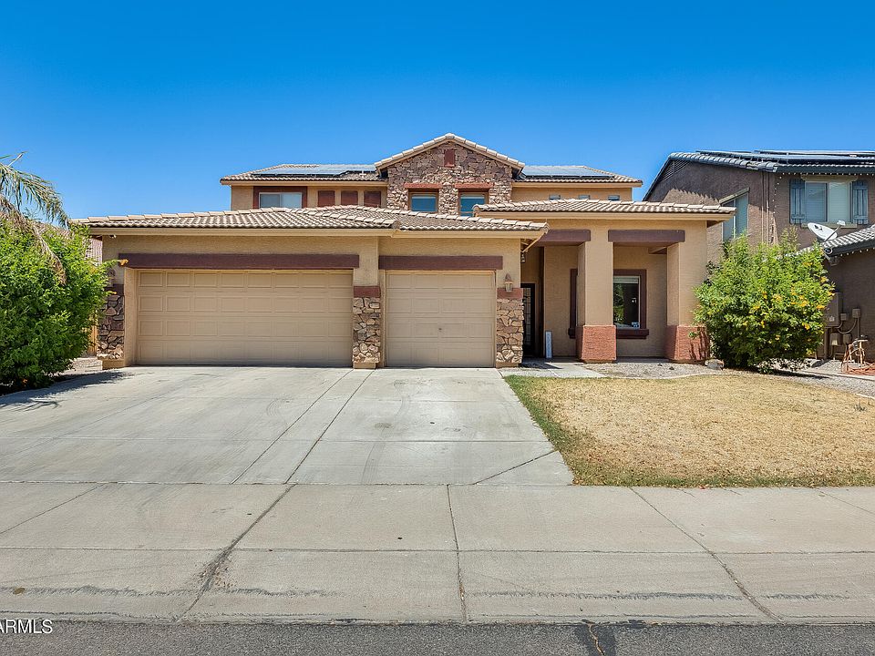Welcome to this stunning 5-bedroom, 2-story home nestled in the heart of tranquility, boasting an expansive 3,505 square feet of living space. Be captivated by the spaciousness that greets you! Each of the bedrooms in this home is generously sized and comes complete with its own walk-in closet. The kitchen is showcasing granite countertops and a large kitchen island. Imagine sipping your morning coffee or enjoying a casual breakfast at the stylish breakfast bar while basking in the natural light that pours in through the windows! One remarkable feature of this property is the inclusion of leased solar panels powered by Sunrun Solar, harnessing the sun's energy to reduce your carbon footprint and utility costs. Embrace a sustainable lifestyle while enjoying the benefits of lower energy bills, all while contributing to a greener future. Don't miss out on the opportunity to make this remarkable residence your own!