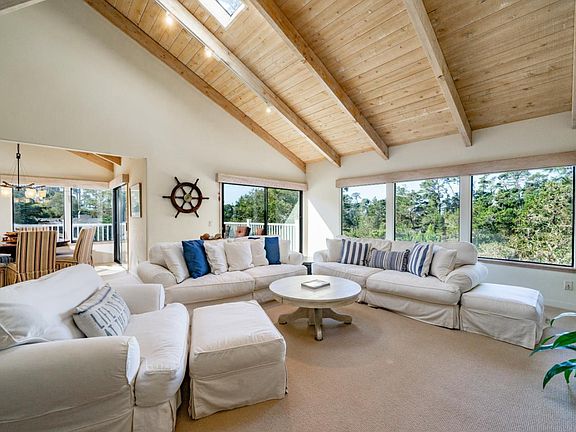 Fabulous family compound with canyon & forested views all while being in close proximity to all Carmel has to offer. Home features a flexible floorplan perfect for full time or weekend living. Main level features expansive living room with vaulted ceilings, skylights with fireplace and open design to include the dining room, atrium kitchen and breakfast area all opening to a large deck perfect for entertaining or lounging. Private master suite is on its own level featuring a walk in closet with a private deck and office area. Lower level features a combination of 2 or 3 bedrooms, or office/den/bonus room also opening to a deck area with separate entrance. Property has multiple levels perfect for a large family or multi-generational living featuring ample storage spaces, indoor laundry, wine storage and 2 car attached garage. Perfect family getaway while sheltering in place while zooming for school and/or work. Consider a lifestyle change to Carmel and park the car and stroll to town.