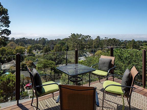Perched above downtown Carmel with sweeping ocean views of Point Lobos and beyond, this hillside tri-level home was completely renovated in 2011. If you love views, this home is for you. Within walking distance to Carmel, the 2,418 sq. ft. main home features three ensuite bedrooms with three separate decks, all with an ocean view. A detached 483 sq. ft. one bedroom, one bath cottage with separate access and its own street address provides overflow space for guests or rental income. This cottage was partially updated in 2012 and has a large kitchen, dishwasher and washer dryer, dining area, living room with fireplace and a bedroom. Amenities in the main house include air conditioning, solar panels, and each room is connected to an intercom system that also connects to the front doorbell and latch. Each room is hardwired for TV/internet and the living room has surround sound. This stunning, meticulously maintained Treehouse is a sophisticated and peaceful retreat with stunning views.