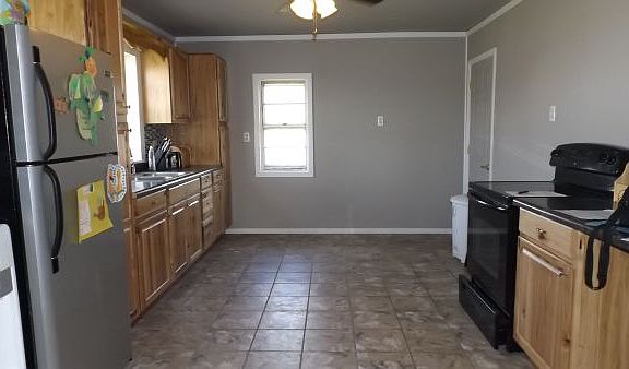 Appreciate simple living! This comfortable 2 bedroom, 1 bath bungalow is situated on 0.690 acre of ground with trees! Large fenced area just off the sizable deck offers a great place for kids to play! The sun-warmed kitchen has been totally remodeled--attractive wood cabinetry, stylish tile backsplash, black appliances & easy to maintain flooring! Full remodeled bathroom with attractive vanity, nice fixtures, rustic wood on ceiling & walls add the perfect touch to this remodel! Other extras include--original wood flooring in living room, upstairs features a huge bonus room with lots of possibilities, brick & vinyl exterior, 3 buildings and priced in the low 40's!