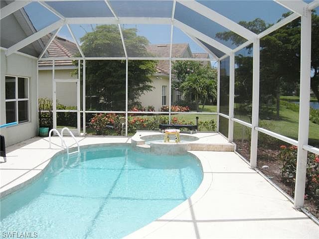 EASY To SHOW very clean property with a Motivated Seller that is listed at market value!! Lowest Priced Waterfront Pool Home w/Heated Spa and extended garage in the gated Sandoval Community. Come relax and enjoy the tranquil views and amenities offered by a resort style development. This 4 bedroom, 2 ½ bath, 2388 sf pool home features a master bedroom on the first floor, w/walk in closet & sliders leading out to a covered lanai with screened in pool & spa area. The home also offers a large granite kitchen with ample cabinet space plus pantry. Enjoy the many comforts of the apacious breakfast area, living, dining and family room with vaulted ceilings. The second level includes three additional beds, bath & a large bonus room, that can be used as an office. Sandoval is Cape Coral's most sought after gated community loaded with amenities including a large resort style pool with palm trees, tiki huts and slide, clubhouse, fitness center, tennis, basketball, twin step down 90ft bocce courts, volleyball, horse shoe pit, & brand new children's play area, 2 miles of walking paths, lush landscaping, fishing pier, picnic area & two dog parks. Call me to schedule your showing today!