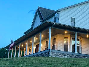 Pending accepting back up offers. This beautiful 6 BR 4 & 1/2 BA farmhouse on 36 manicured acres deserves your attention! 3 levels offer living room with gas log fireplace on main floor, huge family room with kitchenette in basement, and loft with room to gather and socialize upstairs. MBR on main floor with another MBR upstairs. Kitchenette in walkout basement provides for the option of separate living quarters. Wrap around porch with breezeway to 2 car garage. 30' X 40' Shop building with electric, water and bath. Pretty acreage with views is mostly open with 3 ponds. Property fronts a county road and is minutes from Harrison and approx. 45 minutes to Branson, MO, Bull Shoals and Table Rock Lakes, and White River. 25 minutes to Buffalo National River.