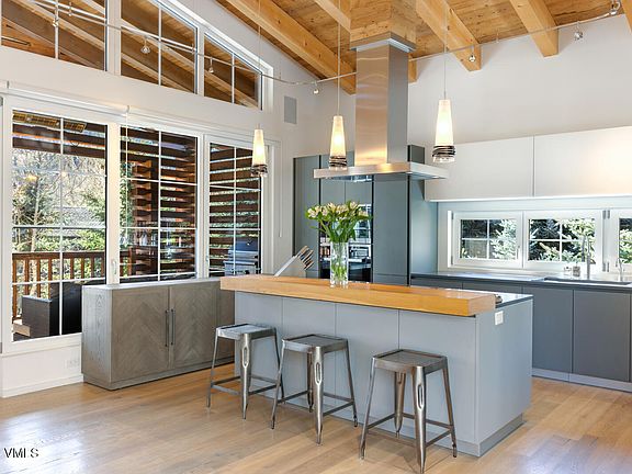 Timeless European architecture at its best! Custom built in Austria from a reclaimed farmhouse and constructed on-site in Vail. This sunny South-facing single family 4-Bed\6-Bath\Loft home has 3 separate living rooms and is fully furnished down to the silverware. Enjoy an open floor plan, vaulted wood ceilings, a modern kitchen with all Miele appliances, wide plank Arrigoni wood floors with radiant in-floor heating, a 2-car garage, huge loft with 4 beds (could be used as an office), large heated deck with outdoor living space and private hot tub. Alpine European wood accents throughout make this a one of a kind mountain home in Vail! Located steps to Ellefson Park and some of the best hiking and biking in Vail. Shows like a new home and is ready to move in for the holidays!