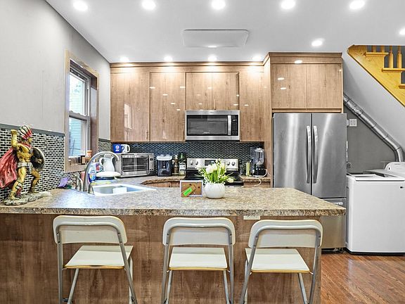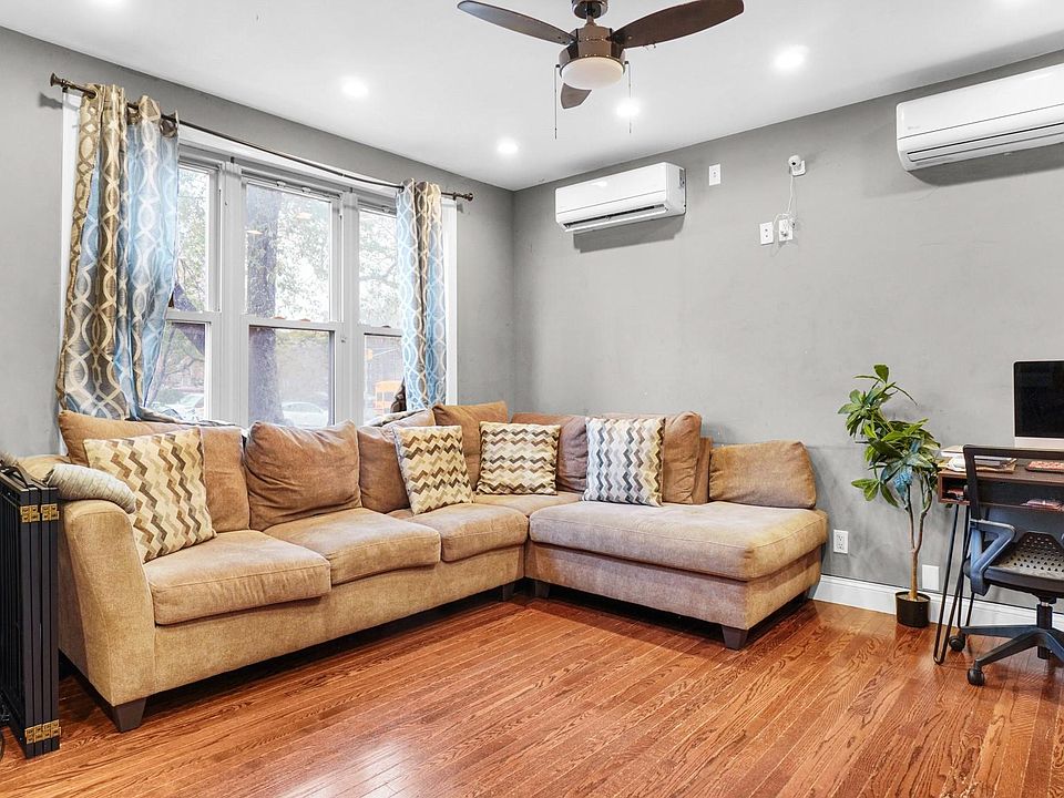This spacious 4-bedroom, 2.5-bath home offers a versatile layout ideal for multi-generational living or investment. The property features a 3-bedroom, 1.5-bath duplex over a separate 1-bedroom, 1-bath unit. Currently fully occupied month-to-month, the property generates $5,196 in monthly rental income. Interior highlights include hardwood floors throughout, central air, stainless steel appliances, and laundry hookup. Outdoor amenities include a rear deck and a large backyard, perfect for relaxing or entertaining. Conveniently located just a few blocks from the 2, 3, and 4 trains.