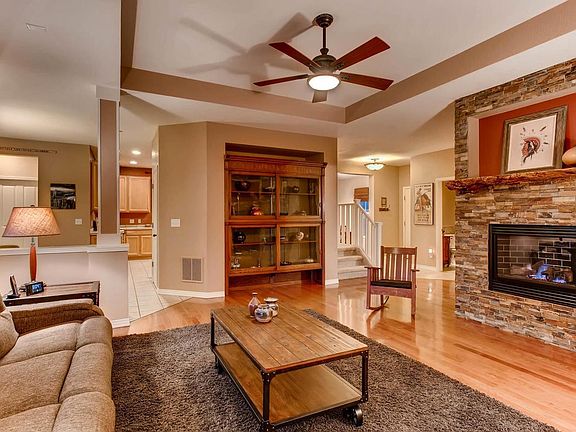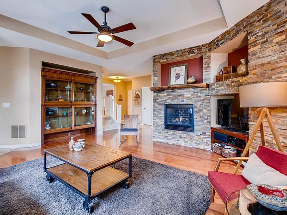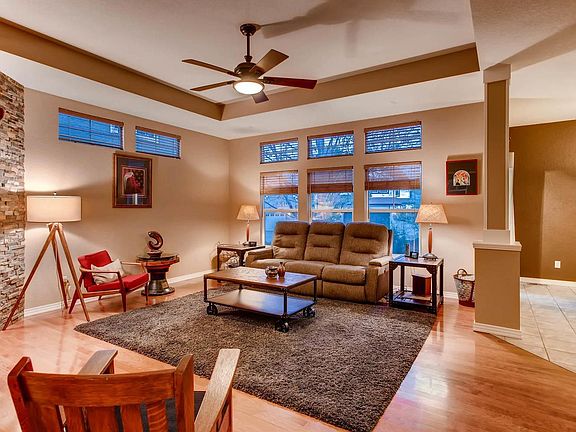 McKay Landing Beauty! Fantastic Parkway Location! Over 3,000 finished square feet. Main floor has great room with gas fireplace and stacked stone, study, dining room and chef's kitchen with sunny breakfast nook and hardwoods throughout. Upstairs is the huge master retreat with room for a sitting area, luxurious master bath and walk in closet. Additional large bedroom with en-suite 3/4 bath, plus two more large bedrooms sharing a full hall bath. Room to grow with the full unfinished basement with egress window. Unbeatable location near public/private school options, Orchard Town Center, hospital, dining, golf, and easy commutes to Boulder and close access to I25. Fenced yard with stamped concrete patio.