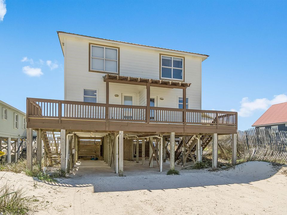 SAND DAYS DUPLEX-- This beautifully remodeled 6 Bed 4 bath Gulf front duplex is great for enjoying the beach! Main levels have Living/Dining/Kitchen that open to decks with beautiful gulf views. Half baths also in downstairs living areas. Upstairs has primary suites with private baths & two guest rooms with shared baths. Great rental income and projections! Must See!