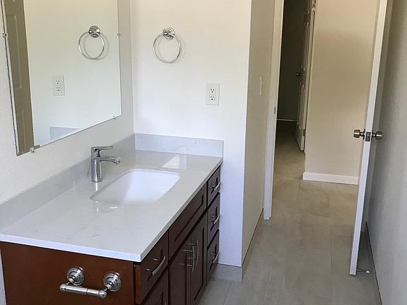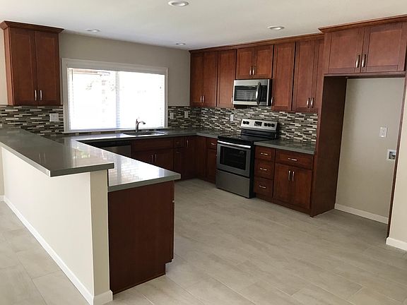 Complete remodel, all new appliances, tile and wood flooring. Front and back yards have new landscaping. Side yard access. 2 car garage. No smoking