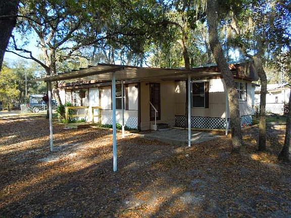 2/2 mobile home with additions on Little Lake Kerr canal. Additions include 11 x 23 family room with stone fireplace and Florida room. Updates are laminate flooring in kitchen & dining area and new carpet in family room, Florida room & bedrooms. Interior of mobile home and additions recently painted. Has carport with open patio area and a detached storage building. Large fenced lot with many trees and has 85 ft canal frontage. New stairs going down to water's edge. Minutes to shopping,restaurants & the springs.