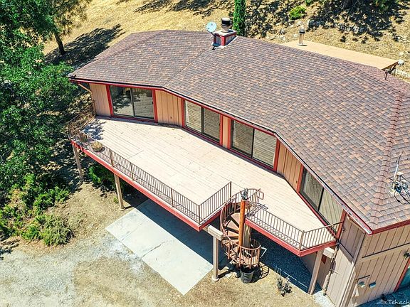 Unique open floor plan home with spectacular views, nestled among the oaks in the highly desirable gated community of Bear Valley Springs. This uncommon 3-bedroom, 3 1/2-bathroom home sits on 5.03 acres. The living room has a cozy wood-burning stove that provides heat and ambience on cool winter nights and frosty fall mornings. The living room at the center of the home features vaulted ceilings and a wall of sliding glass doors opening to an oversized deck that overlooks the valley and lakes. From the deck, a metal spiral staircase descends to the large circular driveway that encompasses the home.The two large upstairs bedrooms provide private and quiet places to relax, each with their own full bathrooms and sliding glass doors to the deck. The third bedroom with full bath is downstairs, along with a room that has its own entrance, which can be used as an office, gym, art studio, music room, the possibilities are endless. A family room off the kitchen has a second wood-burning stove and peaceful views of the trees and natural light. Oaks surround the home, providing an abundance of shade and home to the local wildlife such as deer and elk. Bear Valley offers an abundance of amenities such as a golf course, equestrian center, tennis courts, swimming pool, shooting and archery range, hiking trails and fine dining. Call your favorite REALTOR to see this fabulous mountain retreat.
