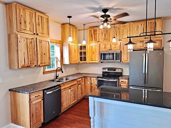 Newer ranch with open floor concept. Hickory kitchen with all new appliances. 2 bedrooms with each having their own bath. 9 ft ceilings. All electric with 3 HVAC split units. Hardwood and ceramic floors. 36" door openings. All on .80/Acre . 16x20 Composite deck. Move-in ready.