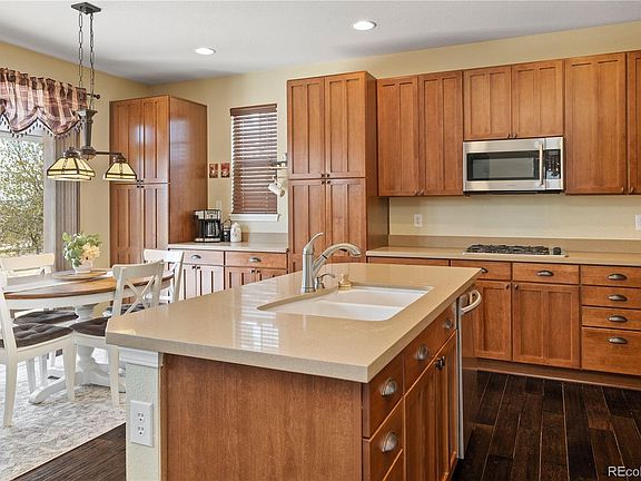 Fantastic home located on great interior location in Tallyn's Reach! Gorgeous hardwood flooring thru much of main floor with neutral color carpeting thru-out remainder of home! Spacious kitchen with plenty of maple cabinetry and tons of counter-space! Gas range and stainless appliances round out the complete kitchen that was made to entertain! 4 beds up PLUS loft PLUS main floor study...a place for most everyone! Primary bedroom with tray ceilings and ceiling fan, generous walk-in closet and 5-piece master bath! Finished basement complete with 3/4 bath, wet bar, and rec room for tons of flexibility! Main floor laundry! Absolutely stunning backyard with mature landscaping and significantly sized stamped concrete patio! Roof shingles, gutters, rear windows and exterior paint all new within the last 4 years! 3 car side by side garage! Hurry, this is an excellent two-story floorplan with an excellent interior location, located in the excellent Cherry Creek School District, and built by an excellent builder (Beazer Homes)!