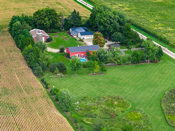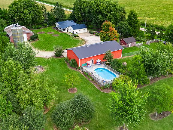A RARE OPPORTUNITY! WELCOME TO THE COUNTRY AND YOUR OWN PRIVATE 5 ACRE OASIS WITH THE MOST BEAUTIFUL, SERENE SUNRISES AND SUNSETS WAITING FOR YOU! SYCAMORE SCHOOLS AND JUST ABOUT A TEN MINUTE DRIVE TO DOWNTOWN SYCAMORE! THIS PROPERTY HAS SO MUCH TO OFFER YOU WILL FEEL LIKE YOU'RE ON VACATION EVERYDAY! WHERE TO BEGIN? LET'S START OUTSIDE! The 36 X 72 outbuilding has a 30 X 36 shop with overhead door (which can also be used as a 3+ car garage) and the 36 X 42 entertainment portion of the building has a wet bar, kitchen set-up, loft, 1/2 bath, and an overhead door and man door. This is the perfect place to entertain your family and friends, have a wedding, reunion, watch sports...so many options! There's more... The atrium doors will take you onto a 50 X 30 deck surrounding the 18 X 33 oval above ground pool, complete with heater and pool equipment! Great views of the two prairies and tree lined parcel from the pool deck! The 40 X 60 second outbuilding with overhead and man doors will be a nice home for your animals or allow for great storage and parking! There's also a 20 X 20 shed with fenced pasture, plus an invisible fence around all five acres, and plenty of parking! This park-like setting contains 63 species of mature trees and shrubs, rain gardens, mesic and gravel prairies, a pear, plum, peach, and apple orchard, perennial flower gardens, and two silos! Altogether 150+ species of Illinois prairie and woodland species! Grab your beverage of choice and reminisce with family and friends around the 20' radius brick-lined fire-pit! NOW LET'S MOVE INSIDE... The 8 X 32 covered front porch will be the perfect place to welcome your family and friends and there's plenty of room for your table and chairs to enjoy your morning coffee/tea while enjoying the sunrise! Enter this 3 bedroom, 2 1/2 bath home to find a foyer with entrance closet and a spacious living room large enough to be a living/dining room combo! Step into the 3-season room with abundant windows. You may just want to grab a good book and relax or take a nap here or step out onto the large patio and enjoy your surroundings in the beautiful outdoors! The eat-in kitchen provides plenty of space for your dining set as well as a breakfast bar, and ample cabinetry and counter space to prepare all of your favorite meals! Off the kitchen is the laundry room complete with washer, dryer, sink, two closets (one currently used as the pantry closet), and access to the 2-car garage with bump out storage area. The primary bedroom has a walk-in-closet and attached bathroom with a shower. Two more nice-sized bedrooms and a full bath with tub/shower complete the first floor. Let's check out the basement... Extremely spacious family room with a 2.5 X 24 closet for storage with built-in shelving, another large room for exercise, hobbies, office or whatever you wish, as well as a 1/2 bath, and another storage room with new exterior access. The home and entertainment/shop outbuilding are both 2 X 6 construction. Home has 200 AMP service, entertainment/shop outbuilding has 100 AMP service, and second outbuilding has 100 AMP service. UPDATES/IMPROVEMENTS: New steel roof and new exterior basement access door (2023), entertainment outbuilding 1/2 bath, kitchen set-up, wet bar, and electronic door opener (2019), well pressure tank and water heater (2017), pool (2016), water softener (approx. 8 years ago), re-roofed entertainment/shop outbuilding and new furnace and central air (2014), well approx. 400' deep (2002). Great location located on a hard surface road only 10.7 miles to I-39, 8.8 miles to I-88, and 23 miles to I-90. THIS PROPERTY OFFERS SO MUCH LIFE AND FUN IN A TRULY PEACEFUL, QUIET, AND BEAUTIFUL SETTING! AN INVITATION TO YOUR NEW HOME...
