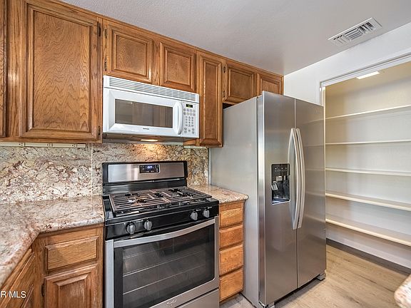 Welcome home to this tastefully updated 3 bed, 3 bath Orangewood home located at the end of a cul-de-sac in central Simi Valley. You will immediately notice the high ceilings and the fresh paint throughout providing a light and bright feel. Located downstairs is a large formal living room w/ high ceilings and a cozy fireplace with rock fascia, a powder room with maple cabinets and stone counters, a large downstairs closet under the stairs, and downstairs laundry room/Pantry. The updated kitchen featured granite counters, stainless appliances, a walk-in pantry, and recessed lighting. The family room features an additional fireplace, built-in bookshelf, ceiling fan, and sliding glass door to the backyard. Located upstairs are 2 guest bedrooms, an updated guest bath, an oversized main bedroom w/ double door entry, vaulted ceilings, a walk-in closet, a and a large ceiling fan The private bath boasts travertine counters and flooring with a gorgeous walk-in shower with dual shower heads and recessed lighting. This home also has a finished Two car garage w/ direct access, a tankless water heater, an upgraded furnace. The back yard is ready to entertain with a jetted tub which was a purchased in May 2021 with 220 electrical ran to the spa.