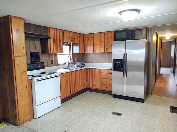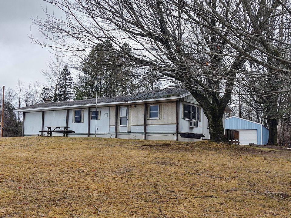 AFFORDABLE COUNTRY HOME WITH POLE BARN, BASEMENT AND GREAT VIEWS- ELBRIDGE TWP. Vacant and ready for occupancy, this 2 bedroom, 1 bath home sits atop 2.66 wooded acres in the middle of farm country. Open floor plan and loads of storage space in the dry walk-out basement. Additional room off main basement would be great for hobbies, crafting or additional sleeping space. Previous owner had wood burning stove in basement for supplemental heating. Pole barn has concrete floor, high ceilings and side sliding door. Wooded portions of property are great for kids, pets and privacy. Make plans to come see this one soon. It won't likely last long in this competitive, low inventory market. Lenders will need to know that this is a 1974 single wide with updated title.