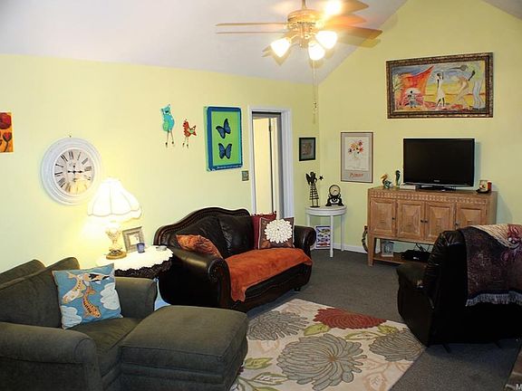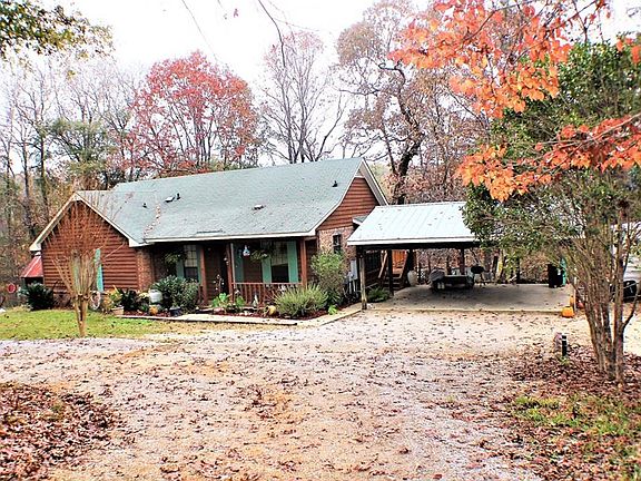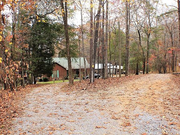ENJOY THE PEACEFULNESS, BEAUTIFUL WOODS & WILDLIFE!!! This cute 3 bedroom, 2 bath home is nestled on almost 3 acres of land! The spacious living room offers a cozy stone fireplace to warm yourself on those cold days and nights. The open kitchen features a breakfast bar, breakfast area and pretty wood flooring. Double doors lead you into the attractive gathering room that features a picture window with a built in sitting area where you can sit, relax and enjoy gazing at all the luscious plants and wildlife in the back yard! There's a covered deck and open deck outside the gathering room that you can grill out on and enjoy spending precious time with your family and friends! There's so much to explore in the back yard as you walk down the pretty cobblestone trails while the kids enjoy the two play houses! The home also features 3 storage buildings with electricity, a concrete block storm shelter to keep you safe from inclement weather and a nice circular drive way! This home has much to offer and is waiting for you to move in!