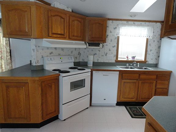 Well maintained mobile in great condition, on a nice lot with a shed, large deck and many upgrades. Newer electric stove (2018), dishwasher ( 2017), living room carpet replaced in 2015 and the home is easy to heat with 6" insulated walls. Skylights let in lots of natural light, ceiling fans to keep you cool and the vacant lot next door offers a bit more privacy than usual. New oil tank up to current code for your kerosene heat. Washer and dryer are negotiable. Very clean home, non-smoker owner. Homes in this quiet park are in great demand, so visit soon and make an offer! Buyers must be approved by park authorities prior to closing.