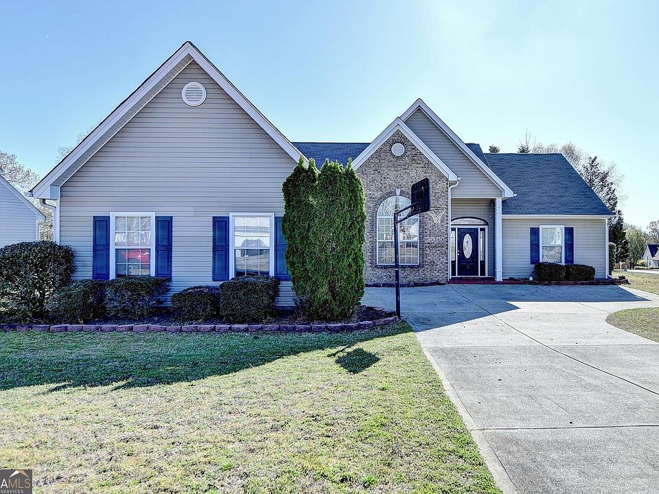 You will love this charming Ranch home with a fenced back yard in the sought-after Mill Creek School District. Featuring a split bedroom plan, the master on the main provides you with comfort and privacy. The master bath features a soaking tub, walk-in closet, separate shower and double vanity. Enjoy the warmth of the fireplace in the family room, with a bonus room nearby. The kitchen features a gas stove, stone countertops, plentiful cabinet space, and a view to the family room. There is a breakfast area -- large enough for a dining room table -- and there is also a separate dining room. The separate dining room could be used as an office if desired. Laminate hardwood and carpet flooring throughout the house. The yard is level, landscaped, and is a large corner lot. The back yard is fenced. Neighborhood amenities include a swimming pool, tennis courts, a playground, and sidewalks great for walking. Located just minutes from I-85 and GA-316 and the Mall of Georgia restaurants, shopping and entertainment.