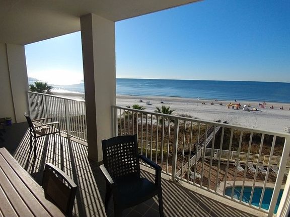 Experience enviable beach and Gulf views from this completely updated 4th floor three bedroom, two bath direct Gulf front condo at Windward Pointe in Orange Beach! The 4th floor is perfect for taking a leisurely nap on your sofa or your Gulf front master bedroom while watching dolphins in the Gulf. Windward Pointe 403 overlooks the calming waters of the Gulf of Mexico (Dolphins have been sighted), the white sandy beaches of Orange Beach and the spacious Gulf front pool. Beautiful upgraded kitchen and bathrooms. Beautiful new tile. A/C is 1 year new. Hot water heater 3 years new. The washer and dryer are also just two years new. Master bedroom is beautifully appointed and comfortable, with a king size bed and flat screen TV. Condo is equipped with free, secure wifi, and has cable and flat screened TVs in every room. The kitchen is fully stocked with dishes, pots, pans, utensils, and large and small appliances including a coffee maker, toaster, blender, and crock pot. The balcony overlooks the white sands and blue waters of the Gulf of Mexico. Beach chair rentals are available on a first come first serve basis. See additional photos. Other on-site community features include a kiddie pool, an indoor pool/hot tub, fitness room, and a BBQ area with 2 charcoal grills (1st come/1st serve usage).