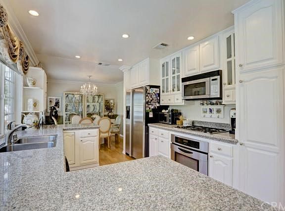 Vacation at home in this dream backyard featuring a gorgeous pool and spa with rock waterfalls amidst a tropical landscaped setting. This highly upgraded, totally remodeled, 4 bedroom home has an enlarged master suite with a remodeled master bath including double sinks, large jacuzzi tub and a gem stone glass shower. Down the hall from the master are two spacious bedrooms and another remodeled bath. The entire downstairs has beautiful hardwood flooring and includes a formal living room with fireplace, a bright open dining room overlooking the pool, a totally remodeled kitchen with granite counters and stainless appliances, along with a cozy family room. A private downstairs bedroom, currently used as an office, and a third bath complete the perfect picture. No expense was spared in the gorgeous remodel of this lovely home. The list price is the minimum bid subject to seller's acceptance. Please visit www.OCQuickSale.com for more information. Preview times are from 1PM -3PM Saturday, May 9th.