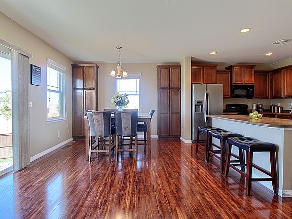 Perched on a corner lot with sweeping views of the plains, this home boasts a modern floor plan just right for today’s lifestyle. Gathering as a group to watch College Game Day will be a blast with the open floor plan or enjoy a quiet brunch in the breakfast nook. The kitchen provides maple cabinetry and a stainless refrigerator. Upstairs, find four bedrooms (kind of a rarity) - providing comfortable sleeping arrangements for all. The unfinished basement is a blank slate just waiting for future expansions. The location is close to amenities and easy for commuters with close proximity to E-470. Best value for 4 bedroom home in Tollgate Crossing. Impeccably maintained and clean. Cherry Creek school district. Tons of upgrades, floors, light fixtures, appliances, cabinets.