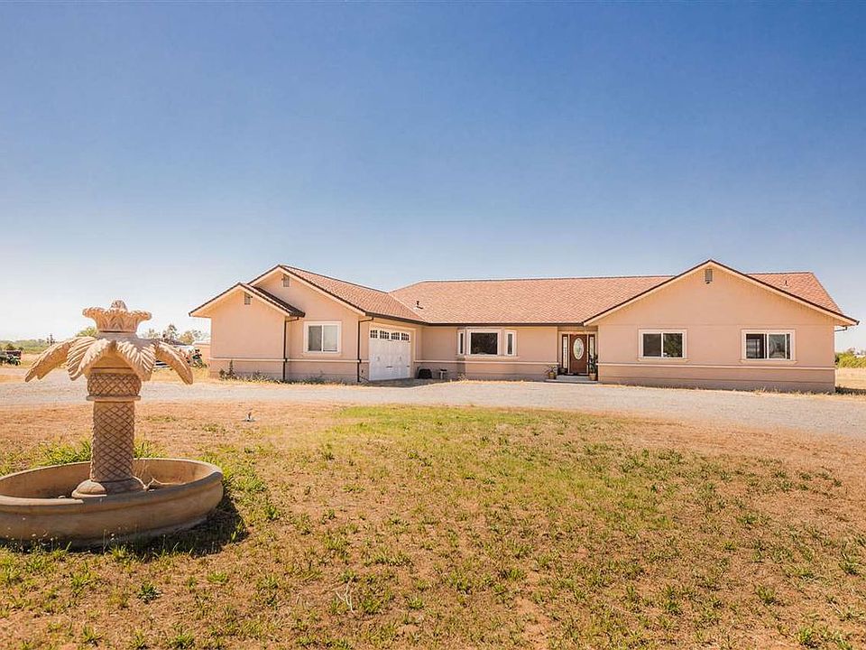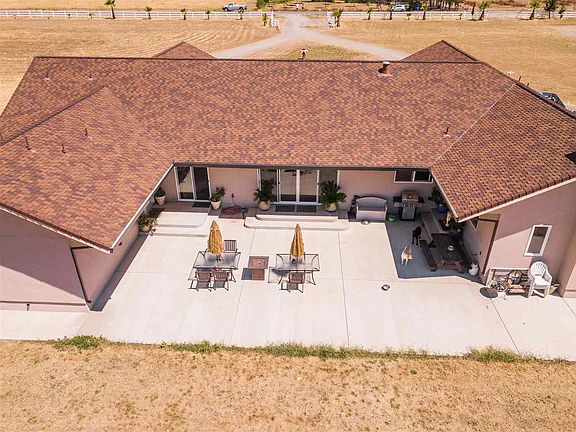MOTIVATED SELLER! Living is easy in this spacious custom home located on 10 private flat acres. The open floor plan encompasses 3,224 square feet with four bedrooms and 2.5 bathrooms with plenty of space for sleep, storage and entertaining. Entertain with style in the generously sized vaulted ceiling formal living room, chef's kitchen with granite counter tops, stainless steel commercial grade appliances, double ovens, microwave/convection oven and cherry wood cabinets, expansive vaulted ceiling family room with fireplace and custom bar with granite top that opens up to a large back patio for easy outdoor living. The master bedroom is truly an owners retreat featuring an en-suite bathroom with large jetted soaking tub, double sinks, tiled shower and huge walk-in closet. Land is ready for animals big and small, perfect horse property with perimeter fencing and room to build that barn/shop and pool. Living is easy in this spacious custom home located on 10 private flat acres. The open floor plan encompasses 3,224 square feet with four bedrooms and 2.5 bathrooms with plenty of space for sleep, storage and entertaining. Entertain with style in the generously sized vaulted ceiling formal living room, chef's kitchen with granite counter tops, stainless steel commercial grade appliances, double ovens, microwave/convection oven and cherry wood cabinets, expansive vaulted ceiling family room with fireplace and custom bar with granite top that opens up to a large back patio for easy outdoor living. The master bedroom is truly an owners retreat featuring an en-suite bathroom with large jetted soaking tub, double sinks, tiled shower and huge walk-in closet. Land is ready for animals big and small, perfect horse property with perimeter fencing and room to build that barn/shop and pool.