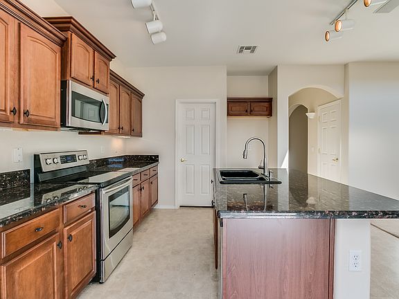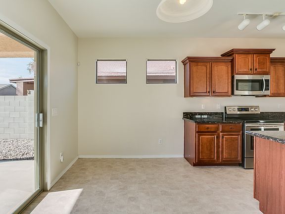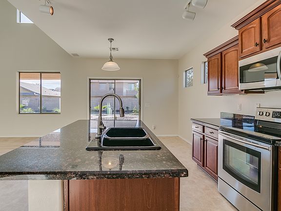 Curb appeal is met by a pleasing interior at this Buckeye home. Enter to find vaulted ceilings and two-story windows allowing for plenty of natural light. The kitchen features granite countertops, stainless steel appliances and breakfast bar seating. Travel out back to find a covered patio and low-maintenance desert landscaping. Master suite amenities include a walk-in closet and dual sink vanity. Short drive to I-10 access. All Opendoor homes come with a 30-day satisfaction guarantee. Terms and conditions apply. Open House: Mon-Sun, 6am-9pm