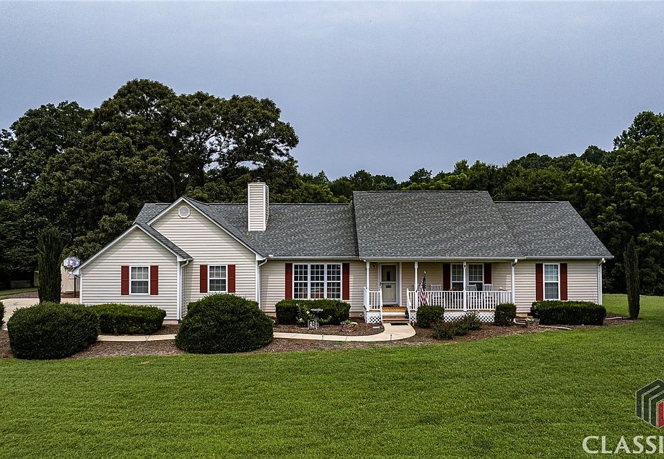 Welcome home to 2478 Bear Creek Road in the heart of Statham, Georgia. This three bedroom, two bathroom property offers the perfect blend of modern comforts and tranquil countryside living, making it a haven for those seeking a peaceful retreat from the hustle and bustle of everyday life. Situated on a generous 6.8 acre lot, the property boasts a long driveway, open green space, landscaping, lush greenery, and many mature trees.