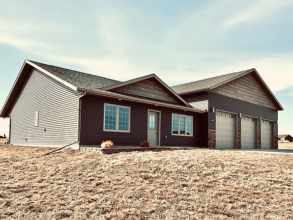 A MECHANIC'S DREAM! This 2019 custom-built home is all about the garage and the home is a true bonus with NO STEPS! The heated, 5-car garage offers a CAR-LIFT, tons of tool storage, 3 floor drains, hot/cold water at the utility sink, an attached mechanical room with a washer for work clothes and a -3/4 bath with a seated shower to wash away the day's work. The home is open concept with a stylish color-palette. Vaulted ceilings, sleek lighting fixtures and large windows add to the airy feel. The kitchen is loaded with stainless-steel appliances, ebony-stained oak cabinetry and granite countertops. The spacious walk-in pantry is the key to a cook's organized kitchen. The primary bedroom has ample closet space, subtle night-lighting and an adjoining bath with a spa-like, ceramic-tiled, rain shower. Enjoy your favorite music or podcast on the surround sound system piped throughout the home, garage and patio while overlooking the sprawling 2 acre yard. A 3-sided border of Colorado Spruce, Green Ash and Lilacs will be planted in May to offer great windbreak and privacy. The home is plumbed for a sprinkler system. The rural water membership is with Missouri West Water System. Just a few miles away...kayakers, bikers, campers and leisure-seekers can take advantage of all that Harmon Lake has to offer.