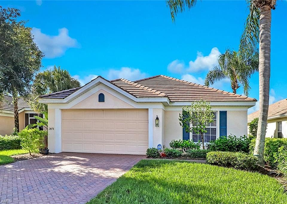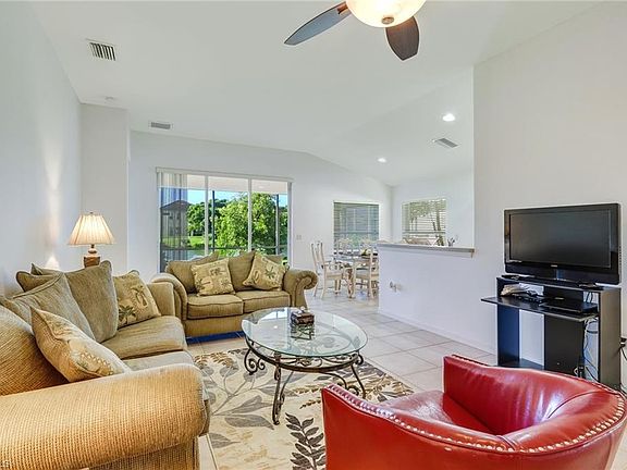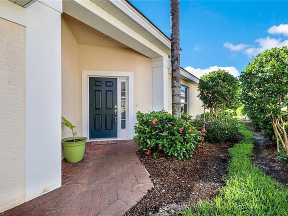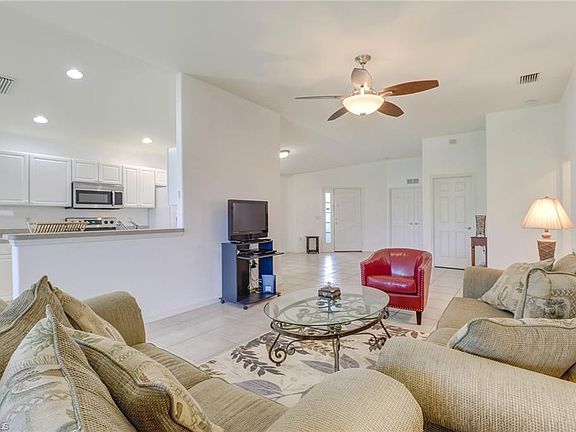 Beautiful 3 bed 2 bath WATER VIEW home in highly sought after Sandoval Community! Sandoval is one of Cape Coral's PREMIERE communities featuring incredible amenities including a clubhouse and pool area that will be undergoing a 1.9 Million dollar renovation in the upcoming year. This home offers over 1,700 square feet and TILE THROUGHOUT! Open layout concept offers vaulted ceilings in the center of the home with kitchen overlooking great room. Double door bedroom at the front of the home is perfect for guests or a home office set up. Spacious master suite overlooks water view. Dual sinks with center vanity space, large walk in shower and private water closet in master bath. Impressive water views from the lanai. So much to take advantage of in Sandoval including wide sidewalks/walking trails, tennis courts, pickleball, multiple fenced in dog parks, resort style pool and clubhouse, playgrounds, fishing, shuffleboard, volleyball, basketball, bocce ball, disc golf, horse shoe, BBQ areas, Fitness center and more! Take advantage of SWFL lifestyle at its finest!