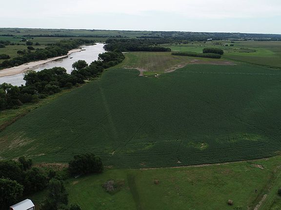 Productive Howard County, Nebraska irrigated cropland offering all sorts of avenues for outdoor sporting opportunities. Cropland, CRP, grass units, and 3/4 mile of North Loup River Frontage provides abundant food and water supply holding large game, game birds, waterfowl, and river fishing access. This property consists of a 1,096 sq. ft. home, detached garage, open front shed, barn and multiple other outbuildings. Highway 11 grants excellent access. There are 8.3 acres enrolled in CRP. Maps and contract information available upon request. Cropland: 81.24 Acres, Total Base: 72.4 Acres, Corn Base: 72.4 Acres, PLC Yield - Corn: 134, ARC-CO-Default: Corn, Wet Acres: 61.4 Acres, Well Information - #G-149124, 550 GPM, Well Depth: 210', Static Level: 7', Pumping Level: 101', 2012 - 8 Tower Zimmatic Center Pivot