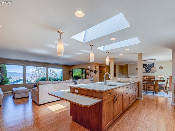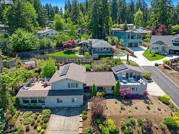 Incredible SW Hills home with magnificent, panoramic views of the city and surrounding mountains! PERMITTED ACCESSORY APARTMENT with INCOME POTENTIAL!! This beautifully renovated home features a huge, modernized kitchen with a cook island, double ovens, skylights and stainless-steel appliances. Kitchen is open to the dining and living room. Several steps down from the dining room leads you to a cozy family room with a wood burning fireplace and a sliding door to the outside patio. Primary suite with double closets. Contemporary accessory apartment with flexibility to be 1 or 2 bedrooms. Featuring a bathroom with laundry, a kitchen with an island and a separate entrance in addition to access to the backyard. Nicely separated from the main living area. Landscaped front and backyards. Backyard features terraced gardens, a charming greenhouse and a spacious patio. 2 large decks to enjoy the endless views and 2 separate driveways for ample parking! Additional features include upper bonus room with 2 sliders and a private deck, new roof with 38 solar panels and an electric car charger! Gorgeous, sought-after neighborhood! This home is a must see to believe!