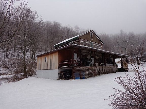 Log house on 340+ acres!!! Two-story log house with covered, wrap-a-round porch located on 340.341 acres. First floor great room includes kitchen, dining area and living rm. Master bedroom on first floor. Two bedrooms and full bath on 2nd level. Heated via wood stove. Included shed. Both parcels are currently enrolled in Clean and Green tax saving program.