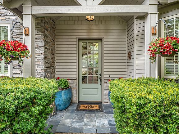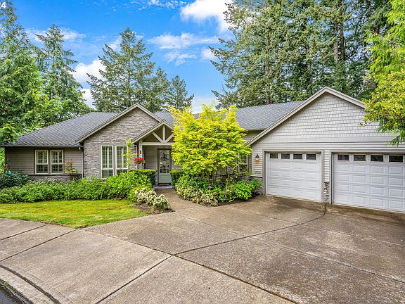 Stunning custom home nestled on a private street with no HOA in West Linn. The grand entrance boasts vaulted ceilings, impressive millwork, a floor-to-ceiling slate fireplace, and captivating sunset views, and that's just the beginning. The kitchen is equipped with a wine fridge, convection oven, gas cooktop in the island, gorgeous and unique granite countertops, a spacious nook with deck access, ample cabinets, and strategically placed windows. The primary suite on the main floor features a soaking tub, crown molding, timeless tile, and high ceilings. Embrace privacy and nature on the oversized lot facing west, perfect for enjoying sunset vistas with your favorite beverage. The impeccable millwork extends downstairs to the daylight basement. The bonus room opens to a deck, maintaining the back-to-nature theme. Three generously sized bedrooms, a laundry room, and a full bath complete the lower level. For those needing extra space, the enormous storage area with easy access provides the perfect solution for storing almost anything. Trex decking was used for both decks, ensuring durability and low maintenance. An added feature includes a retractable remote-controlled awning for the upper deck, while the covered lower deck guarantees year-round enjoyment of the outdoors. The home is situated on just shy of a third of an acre, offering privacy, southwest sunset views, low-maintenance landscaping, and terraced garden planters on a drip system. This property has great potential for multi-generational living. Converting the unfinished space downstairs into a second primary suite would add significant value and functionality, providing a comfortable living space for guests. Additionally, with the oversized lot, you could explore building an ADU. This could serve various purposes such as housing for elderly parents, rental income, or a separate living space for grown children.