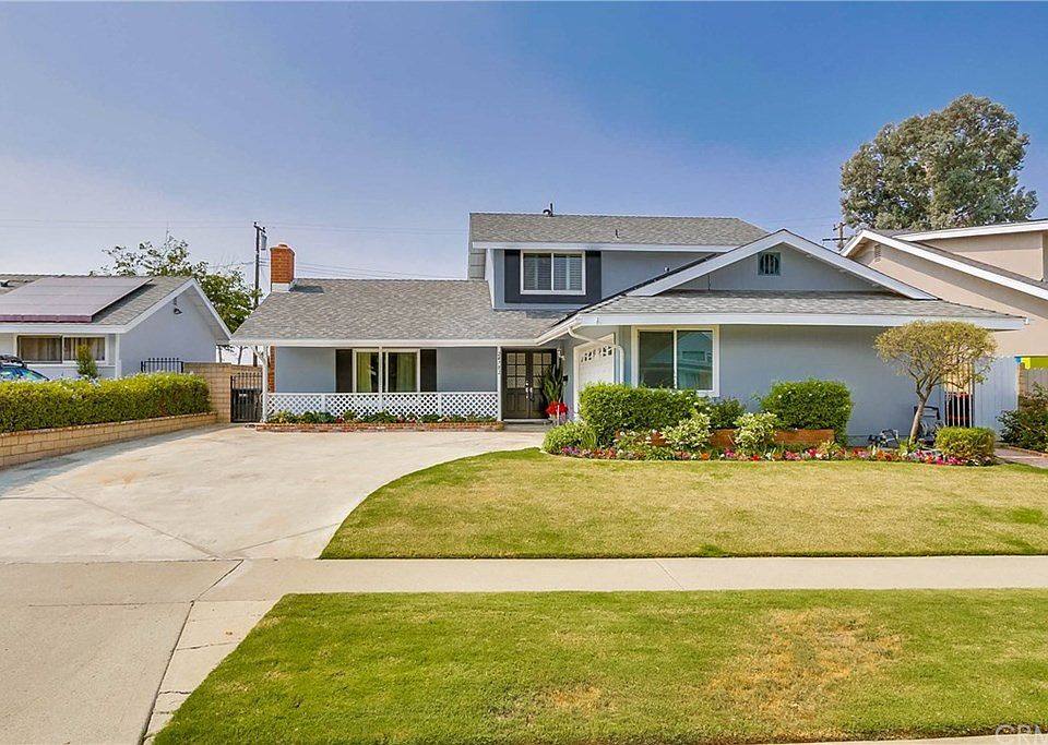 Charming and spacious home located in the desirable Laguna North subdivision in Lake Forest, ideally located on a family friendly street, within walking distance of dining, shopping, and local schools. Blessed with gorgeous curb appeal, colorful manicured landscaping, and a well-maintained exterior all creating a great first impression. The double door entry welcomes you inside where the light and bright newly painted interior, sleek vinyl wood floors, plantation shutters, and vaulted open beam ceilings create an ideal living environment. The spacious floorplan includes a formal living room with cozy fireplace, formal dining area, expansive family room with impressive brick fireplace and direct access to backyard and patio, plus 2 bedrooms and a full bath on the lower level. The sunny kitchen has been beautifully updated with granite countertops, stainless steel gas range and oven, updated faucet and fixtures, prized breakfast bar, and fridge included. Bathrooms upstairs and down, have been beautifully remodeled with granite topped vanities, framed vanity mirrors, updated fixtures and lighting, upgraded cabinetry, and step-in showers with glass tile surrounds and frameless glass shower enclosures. 3 additional guest bedrooms upstairs with gorgeous wood laminate floors and mirrored closet doors. Expansive peaceful and private backyard with lawn, patio, and picturesque landscaping perfect for relaxing and entertaining. 2 car garage with electric car charging station.