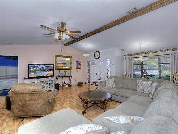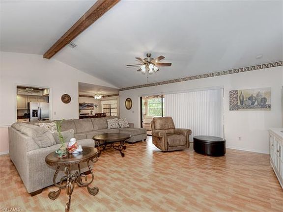 Come take a look at this great 3 bedroom, 2 bathroom, 2 car garage home located in Bonita Springs, Florida. As you enter this home you notice the nice open floor plan with high ceiling and large sliders out to the screened in lanai. The high ceilings make the living room great for entertaining and the upgraded kitchen is open and spacious with granite counter tops. Master bedroom has sliders out to the pool and the master bathroom has a large shower and a nice soaking tub. The lanai is LARGE with a nice under roof area for dining and the pool is a great place to cool off on those hot summer days! This is a great home in great condition so call now for your private tour! Furniture is negotiable.