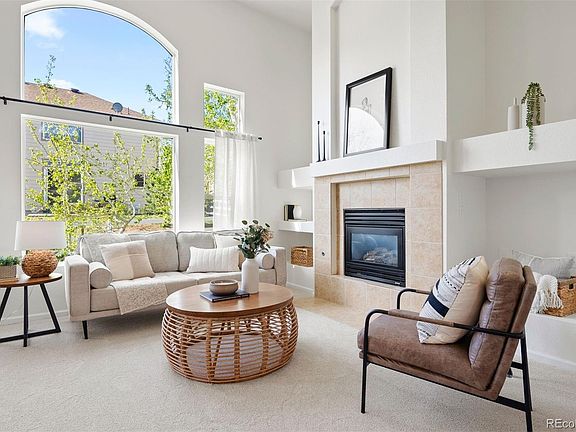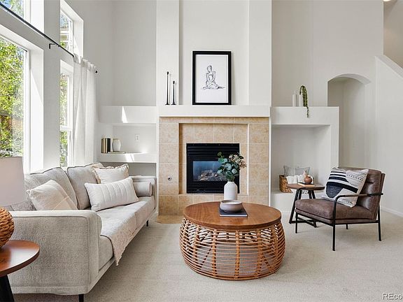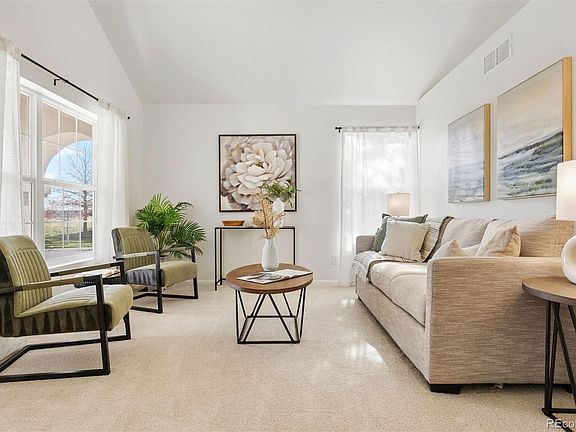 Beautifully updated home blending Mediterranean-inspired charm with fresh, contemporary style. Soaring vaulted ceilings and oversized windows create a bright, open atmosphere complemented by newly refinished real hardwood floors, brand new carpet, updated lighting fixtures, refreshed bathrooms, and brand new paint throughout — making it truly move-in ready. The main-level primary suite provides a true retreat, featuring an en-suite bathroom with private water closet and access to the sizable walk in closet. This 3-bedroom, 3-bathroom home offers 1,585 square feet of bright, inviting living space, plus an additional 560 square feet in the unfinished basement — ready for your personal touch. This home is filled with warmth, natural light, and thoughtful updates throughout. Set on a desirable corner lot with welcoming curb appeal and located within Murphy Creek, a master-planned golf course community known for its sweeping views and clubhouse amenities including food and beverage service, resort style pool, and the multiple parks and trails this property offers a lifestyle of comfort, convenience, and community connection. Ready for your next chapter? Welcome home.
