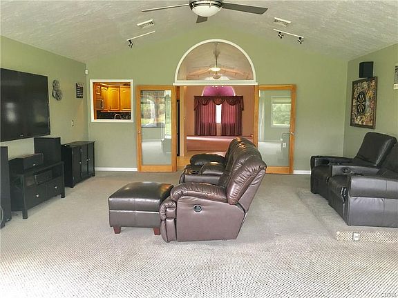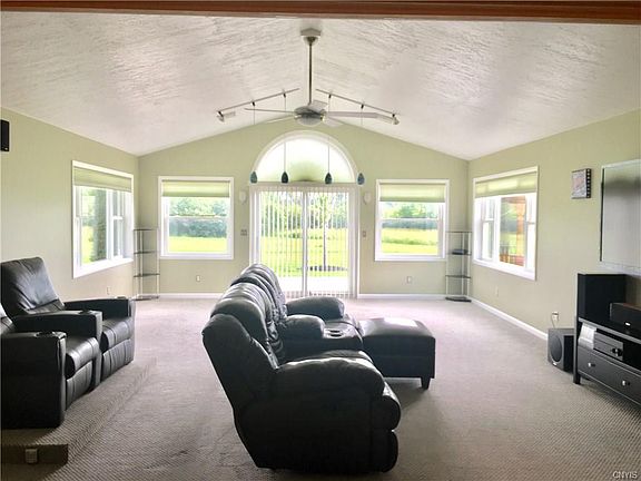 Beautiful 3BR/2BA ranch home on 4.32 acres. Features a custom kitchen, stainless steel appliances, master-en suite, fireplace, theater room/den with surround sound, central air/heat, gazebo, 1 acre stock pond, guest cabin and so much more. Close to shopping & restaurants. Within 5 min. to Ft. Drum & Watertown. Don't miss out, call today!