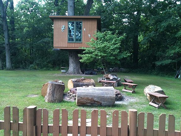Incredibly Unique One of A Kind Property in Well Established "Lake" neighborhood. Great room with Cathedral Ceilings! Large Open Floor Plan! Great Room is the actual original Log Cabin. The Addition was added in the 1990's. Generous 3rd Bedroom or Studio Loft Area w/Balcony and Beautiful Views of the Hickory Arm of Lake Bloomington. Large 4th Bedroom in the Garage. Bright and Airy Kitchen with Abundant Cabinetry, New Counters, and Wet Bar. Huge 2 Car Garage. New roof in 2016. Kitchen and bathrooms updated 2015. This home is Rural but very close to Amenities such as across from Lake Bloomington, Boat Ramp, Parks, Store/ Restaurant. Unit 5 Schools. Well Established Landscaping- including Hickory, Oak & Redbud Trees, flourishing perennials: Hostas, Lilacs, Lilies, Large Tree House, 2 Metal Sheds, Playground, Fire Pit, and Garden Shed. Brick Patio and a Concrete Patio. Partially Fenced. Great Place for Kids to Explore ~ Perfect for Sports and Entertaining